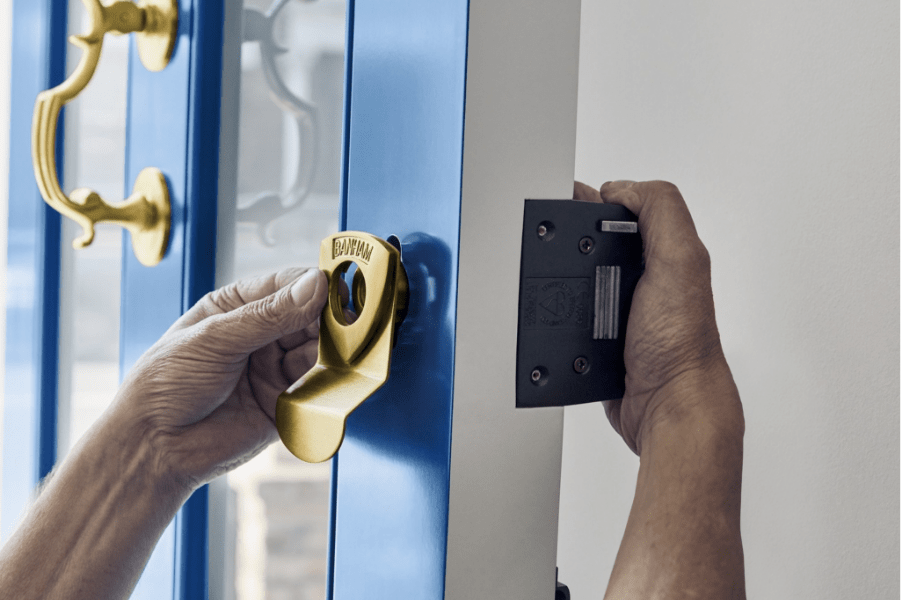 CE marked Banham Night latch locks with high security striker plates, the lock is protected by patent and copyright. It is insurance approved and meets the British Standard 3621. The locks accredited and secured by design SBD and meets the police proffered specification. It has a 6 drill pin drill resistant cylinder, saw resistant bolt and is self deadlocking. The night latch is protected by Banham’s key registration system.